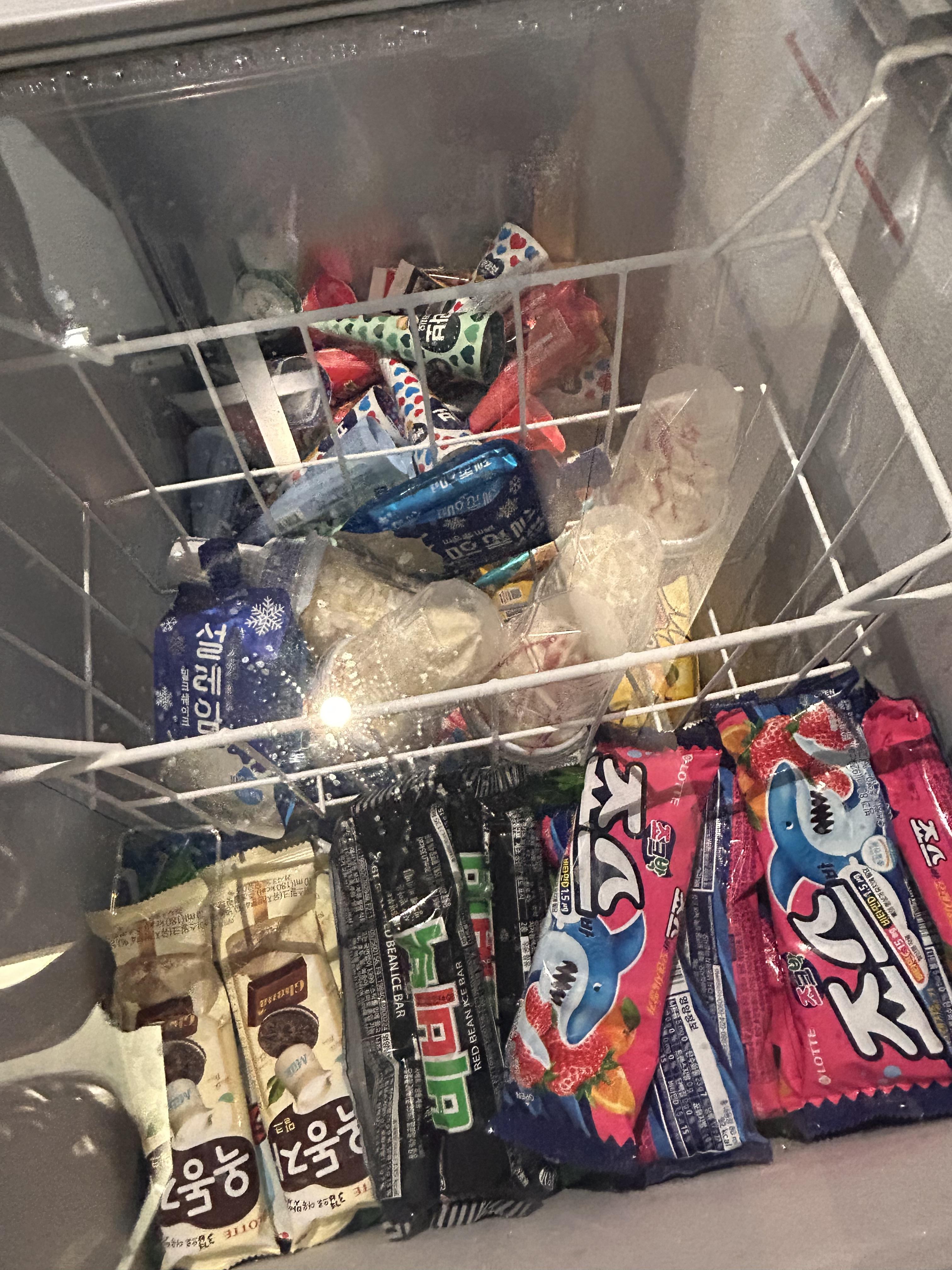 ์ ํ ์ฐ์์์ ๋ค์ด๊ฐ์๋ง์, ์ฌ๋ฌ๊ฐ์ง ์ ๋ฌผ๊ณผ ๊ณผ์๋ค์ ์์๊ฒ ํฌ์ฅ๋ ์์์ ๋ด์์ ์ฃผ์ จ์ต๋๋ค :)