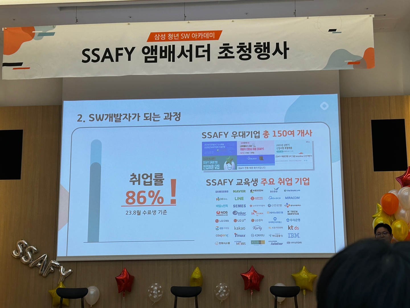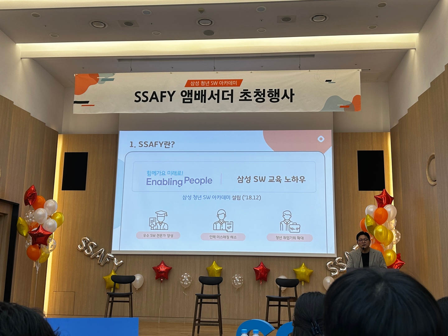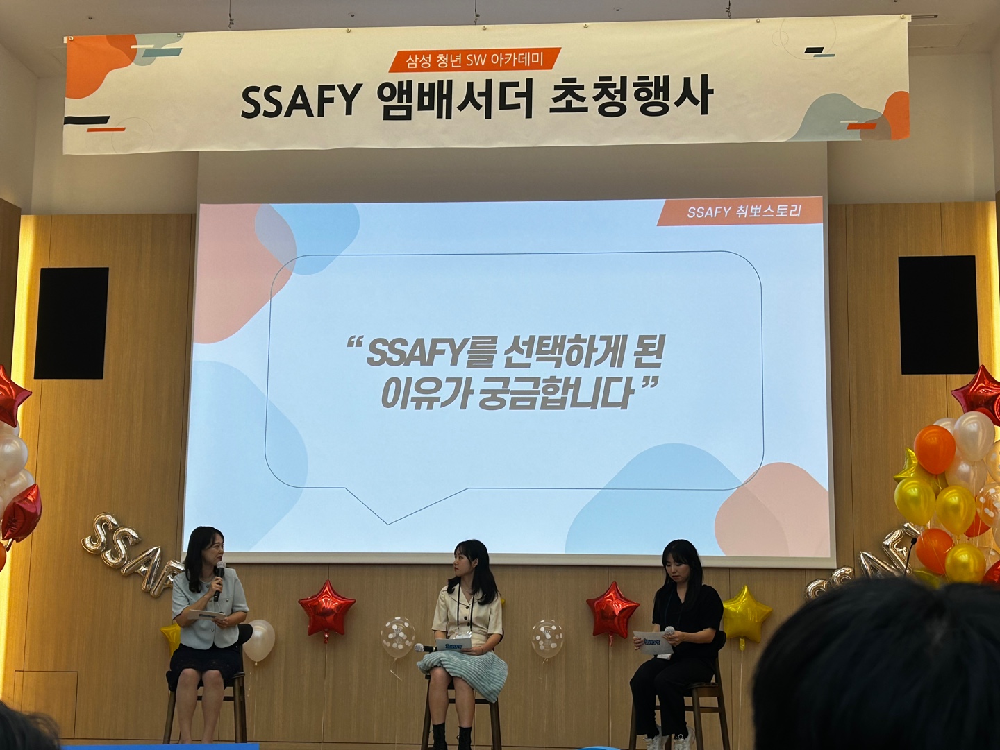 10๋ถ์ ๋ ์์จ ๋ถ๋ค์ ๊ธฐ๋ค๋ฆฌ๋ฉด์ SSAFY ํ๋ณด ์์๋ ํ์ด์ฃผ์ จ๋ค. ๊ทธ๋ฆฌ๊ณ ์๊ฐ ๋ฐ ์ทจ์ ๊ด๋ จ ๋ฐํ๊ฐ ์์๋๋ฐ ์ผ๋ง๋ ์ง ์ฌ์ง ์ฐ์ด์ ๊ฐ๋ ๋๋ค๊ณ ๋ง์ํ์ ์ ์ง์ง ์ด์ฌํ ์ฐ์๋ค ใ ใ ใ