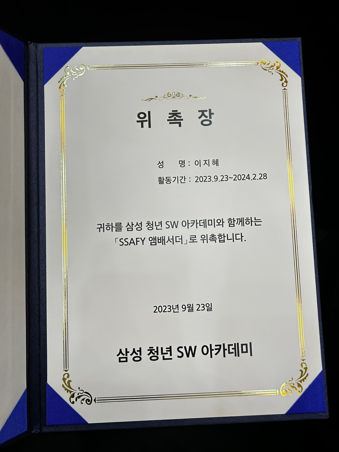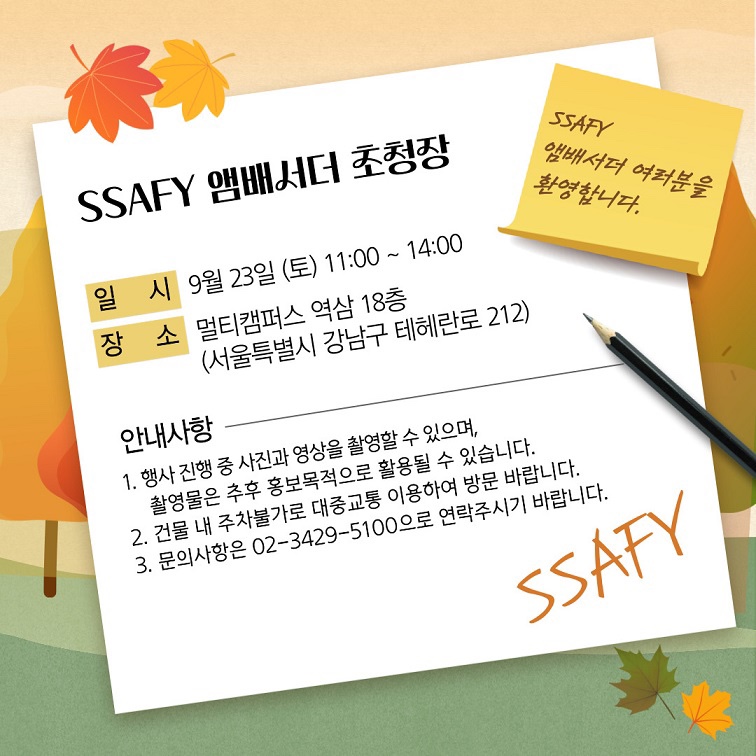 | [SSAFY] ์ผ์ฑ ์ฒญ๋ SW ์์นด๋ฐ๋ฏธ 11๊ธฐ ๋ชจ์ง !! (0) | 2023.10.10 |