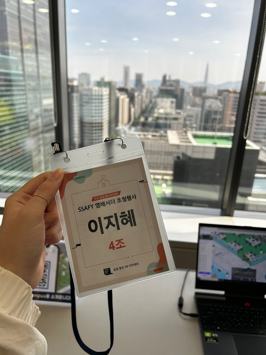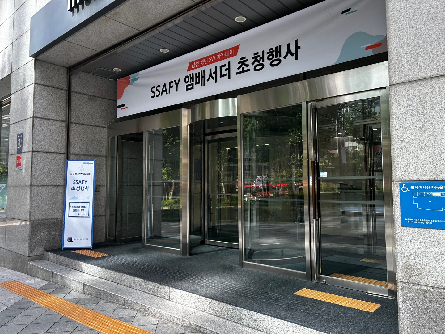 ๋ฉํฐ์บ ํผ์ค ๊ฑด๋ฌผ ๊ฐ๋ ๊ธธ์๋ ๊ฑด๋ฌผ๋ค์ด ์์ฒญ ๋์์ '์ฐ์... ์ด๊ฒ ๊ฐ๋จ์ธ๊ฐ ?' ํ๋๋ฐ ๋ฉํฐ์บ ํผ์ค๋ ์์ฒญ ๋์๋ค. ์ ๊ตฌ์ ๊ฐ๋ฉด SSAFY ์ฐ๋ฒ์๋ ์ด์ฒญํ์ฌ๋ผ๊ณ ์ ํ ์๊ณ , ๋ค์ด๊ฐ๋ณด๋ฉด ์๋ดํด์ฃผ์๋ ๋ถ์ด ๊ณ์ ์ 18์ธต๊น์ง ์๋ ๋ฒ ์ดํฐ๋ฅผ ํ๊ณ ์ฌ๋ผ๊ฐ๋ค.