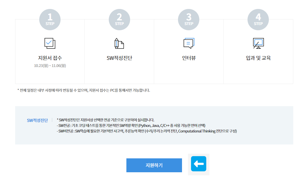 1. λ‘κ·ΈμΈν λ€μ λ€μ νμ΄μ§μμ μ§μνκΈ°λ₯Ό λλ¬μ μΈμ μ¬νλ€μ μμ±ν΄μ£Όμλ©΄ 5λΆλ§μ μ§μ μλ£ν μ μμ΅λλ€ !